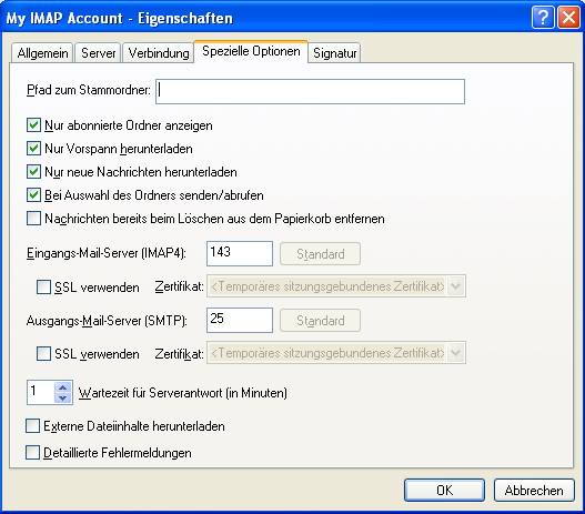 12.6.1 Abonnieren oder Kündigen von IMAP4-Ordnern