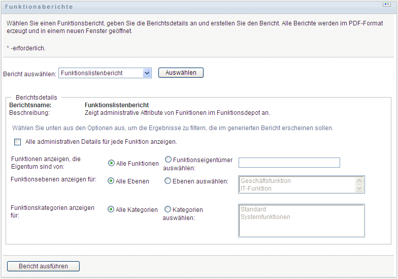 Wählen Sie im Dropdown-Menü und klicken Sie auf . Die Seite „Rollenberichte“ fordert Sie zum Auswählen der in den Bericht einzubeziehenden Parameter auf.