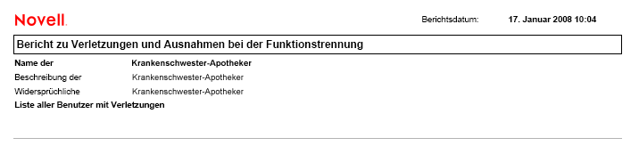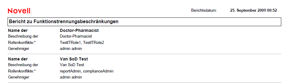 Abbildung 19-3 Beispielbericht zu Funktionstrennungsbeschränkungen