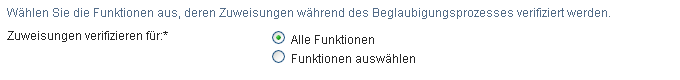 Sie müssen mindestens eine Rolle auswählen, um einen Beglaubigungsprozess starten zu können. Zum Speichern einer Anforderung ist dies jedoch nicht erforderlich.