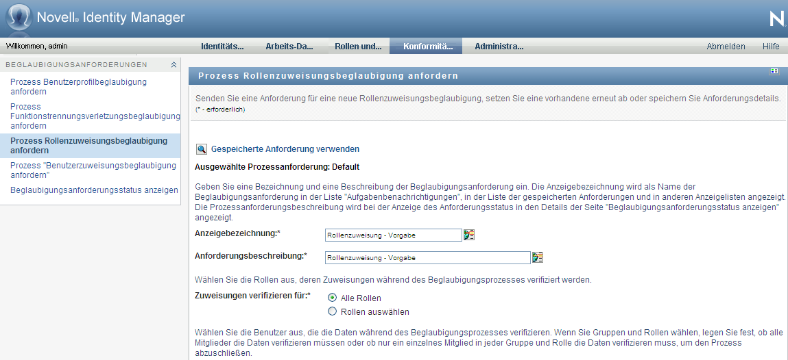 Die Aktionen werden nur angezeigt, wenn Sie ein Konformitätsadministrator sind.