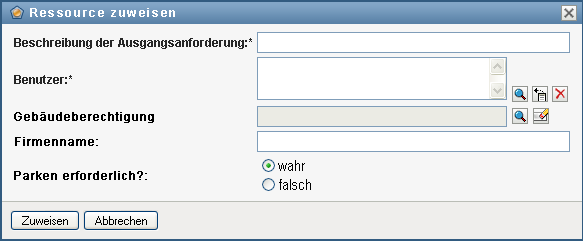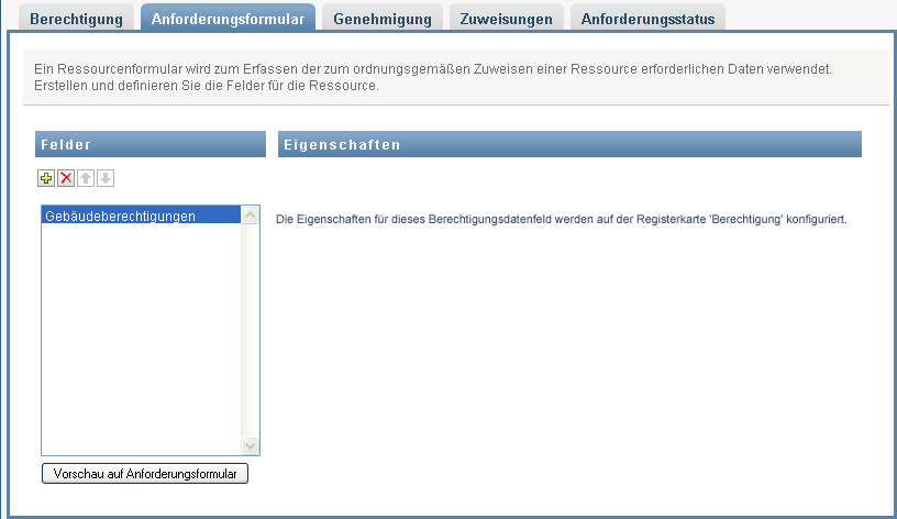 Das Anforderungsformular für eine Ressource enthält zwei verschiedene Feldtypen: