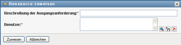 Die Felder und sind erforderliche Felder, die in allen Ressourcenanforderungsformularen enthalten sind. Sie können mithilfe der Objektauswahl die Benutzer für die Ressourcenzuweisung auswählen.