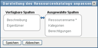 Die Benutzeranwendung zeigt die Liste der derzeit für die Anzeige ausgewählten Spalten sowie eine Liste von zusätzlichen Spalten an, die zur Auswahl verfügbar sind.