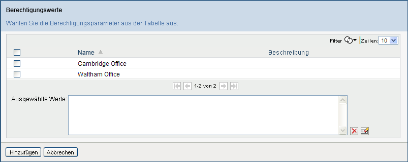 Wählen Sie mithilfe der Objektauswahl die Berechtigungswerte aus: