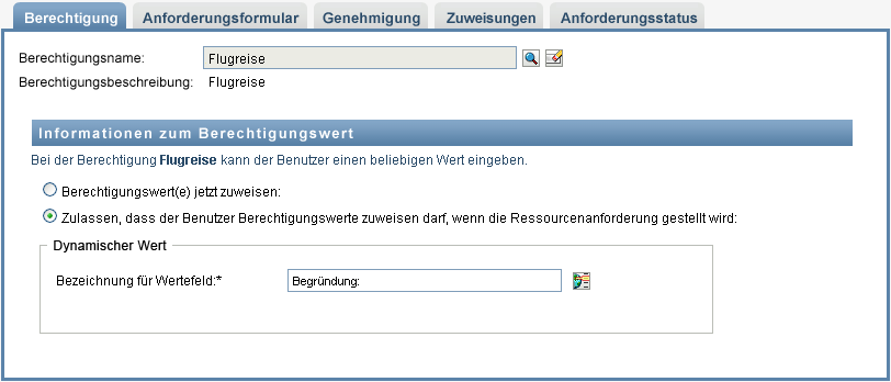 Berechtigung mit Wert in freiem Format |