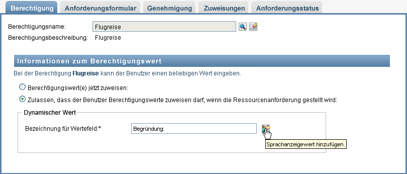 Wenn Sie dem Benutzer das Zuordnen des Wertes zum Anforderungszeitpunkt erlauben möchten, klicken Sie auf .