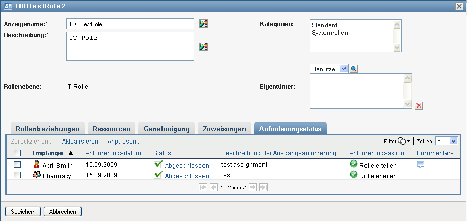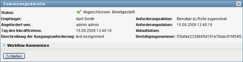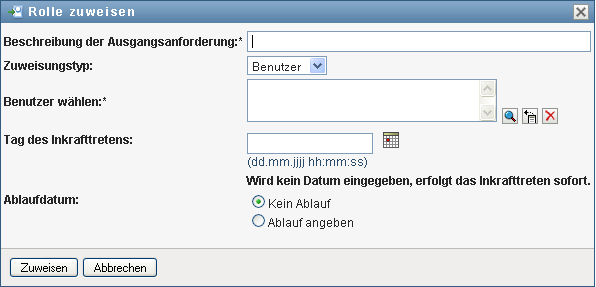 Einzelheiten zum Arbeiten mit dem Rollenzuweisungs-Anforderungsformular finden Sie in Zuweisen einer Rolle aus dem Katalog.