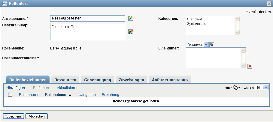 Ermöglicht Ihnen, Rollen für die Rollenorganisation zu kategorisieren. Kategorien werden zur Filterung von Rollenlisten verwendet. Kategorien erlauben Mehrfachauswahlen. |