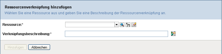 Mit der Objektauswahl können Sie die gewünschte Ressource auswählen und Text angeben, der den Grund für die Verknüpfung erläutert.