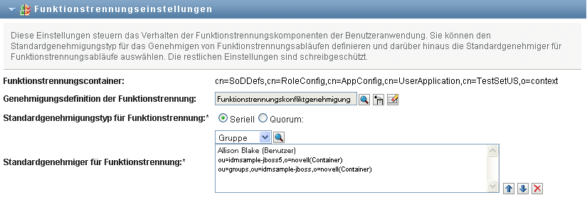 Wählen Sie im Feld die Bereitstellungsanforderungsdefinition aus, die Sie zum Verarbeiten von Funktionstrennungsgenehmigungen verwenden werden.