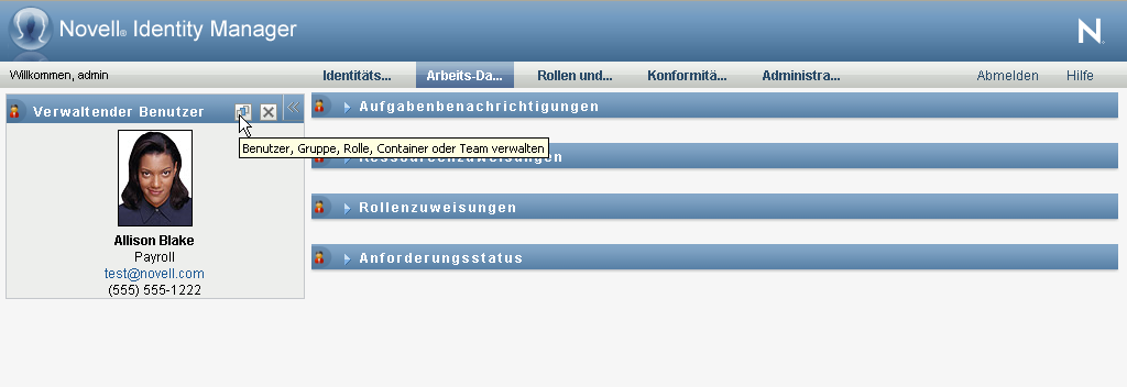1. Klicken Sie im Abschnitt „Benutzerprofil“ auf die Schaltfläche Benutzer, Gruppe, Rolle oder Container verwalten.