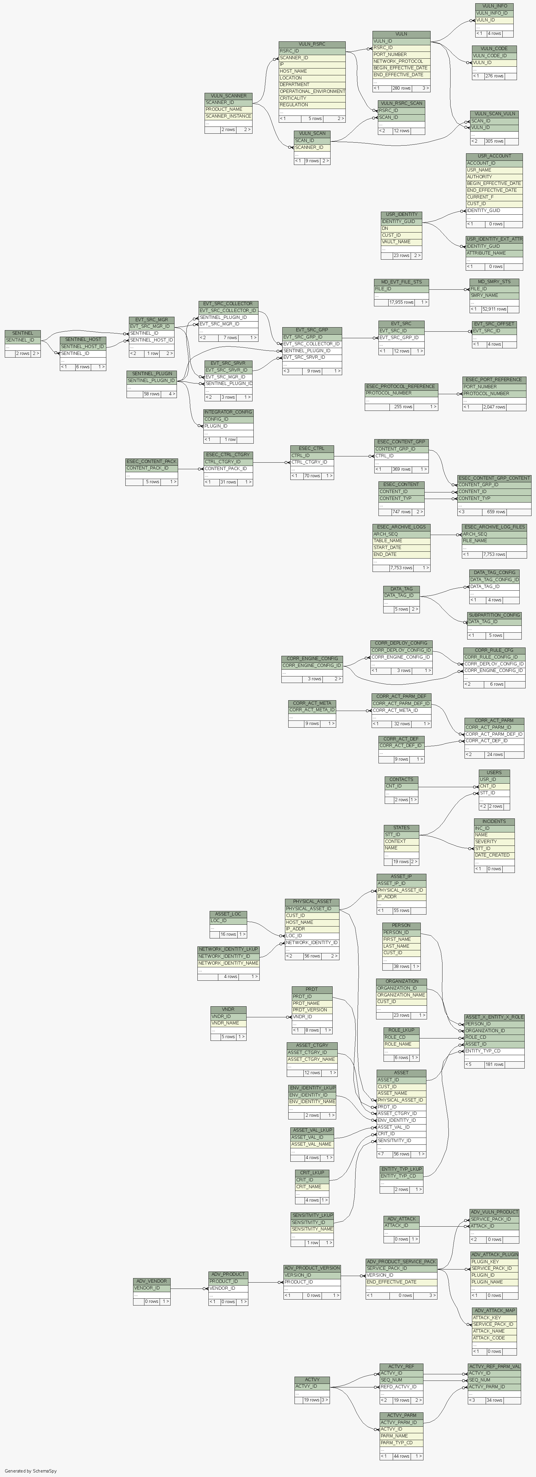 | SchemaSpy Analysis of ESEC.ESECDBA - All RelationshipsSentinel Reporting Views | Generated by SchemaSpy |