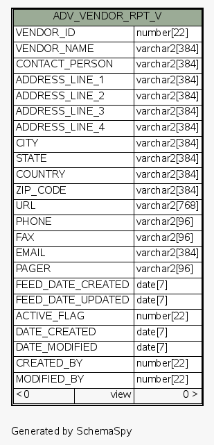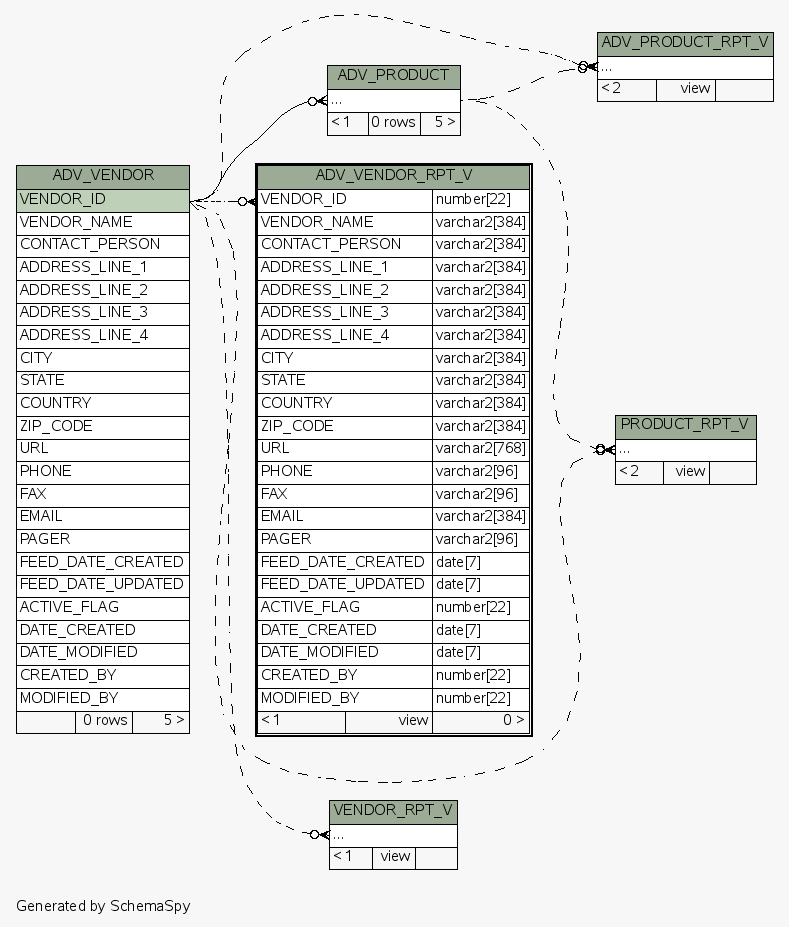 | View ESEC.ESECDBA.ADV_VENDOR_RPT_V | Generated by SchemaSpy |