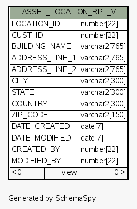 | View ESEC.ESECDBA.ASSET_LOCATION_RPT_V | Generated by SchemaSpy |