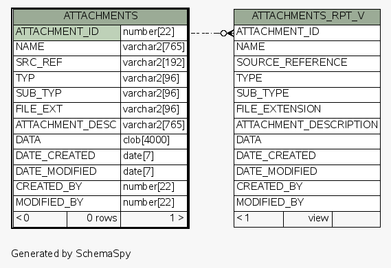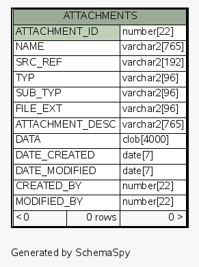 | Table ESEC.ESECDBA.ATTACHMENTS | Generated by SchemaSpy |