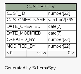 | View ESEC.ESECDBA.CUST_RPT_V | Generated by SchemaSpy |