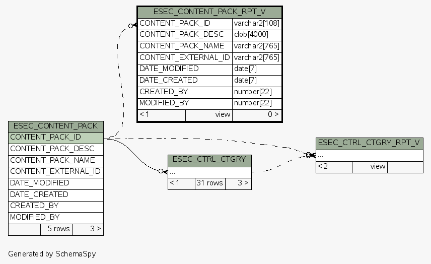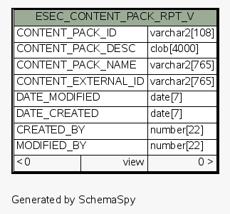 | View ESEC.ESECDBA.ESEC_CONTENT_PACK_RPT_V | Generated by SchemaSpy |