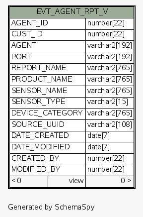 | View ESEC.ESECDBA.EVT_AGENT_RPT_V | Generated by SchemaSpy |