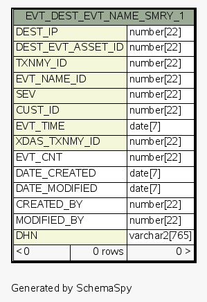 | Table ESEC.ESECDBA.EVT_DEST_EVT_NAME_SMRY_1 | Generated by SchemaSpy |