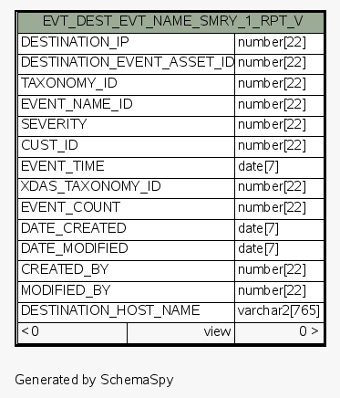 | View ESEC.ESECDBA.EVT_DEST_EVT_NAME_SMRY_1_RPT_V | Generated by SchemaSpy |