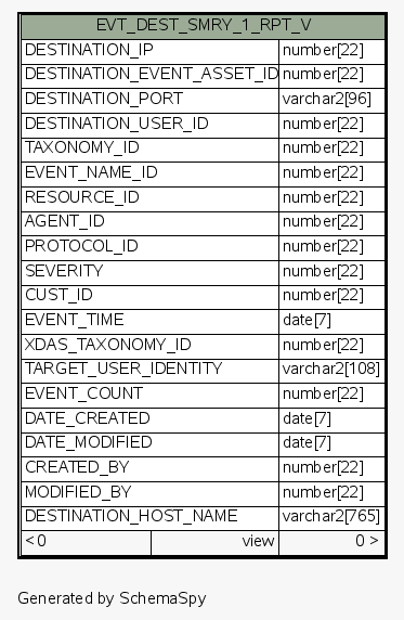 | View ESEC.ESECDBA.EVT_DEST_SMRY_1_RPT_V | Generated by SchemaSpy |