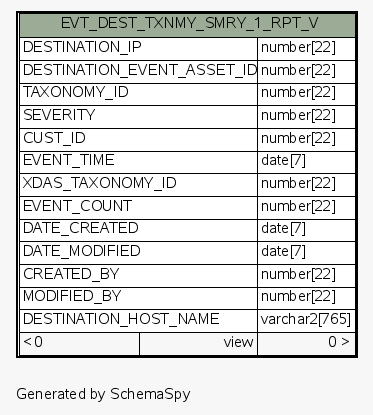 | View ESEC.ESECDBA.EVT_DEST_TXNMY_SMRY_1_RPT_V | Generated by SchemaSpy |