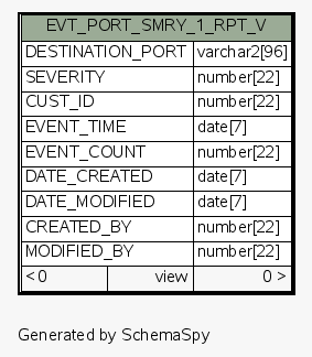 | View ESEC.ESECDBA.EVT_PORT_SMRY_1_RPT_V | Generated by SchemaSpy |