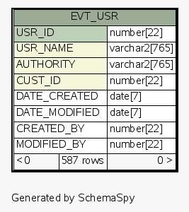 | Table ESEC.ESECDBA.EVT_USR | Generated by SchemaSpy |