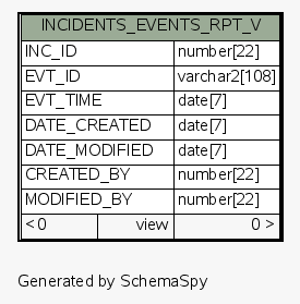| View ESEC.ESECDBA.INCIDENTS_EVENTS_RPT_V | Generated by SchemaSpy |