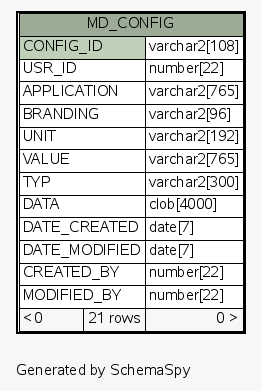 | Table ESEC.ESECDBA.MD_CONFIG | Generated by SchemaSpy |