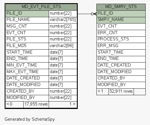 | Table ESEC.ESECDBA.MD_EVT_FILE_STS | Generated by SchemaSpy |
