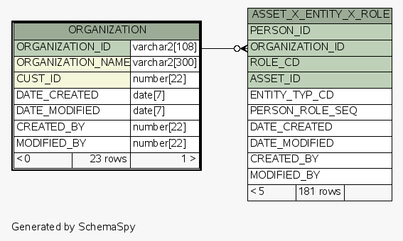 | Table ESEC.ESECDBA.ORGANIZATION | Generated by SchemaSpy |