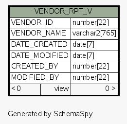 | View ESEC.ESECDBA.VENDOR_RPT_V | Generated by SchemaSpy |
