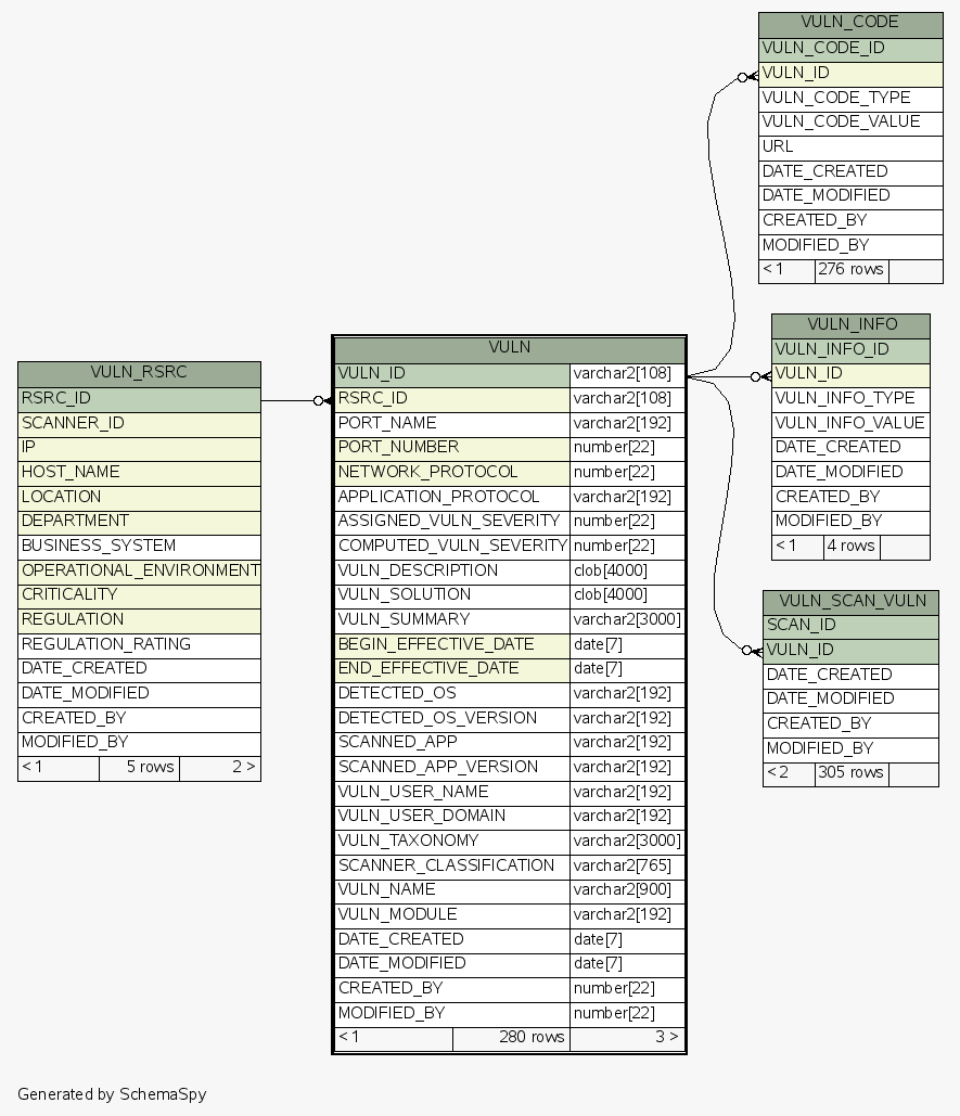| Table ESEC.ESECDBA.VULN | Generated by SchemaSpy |