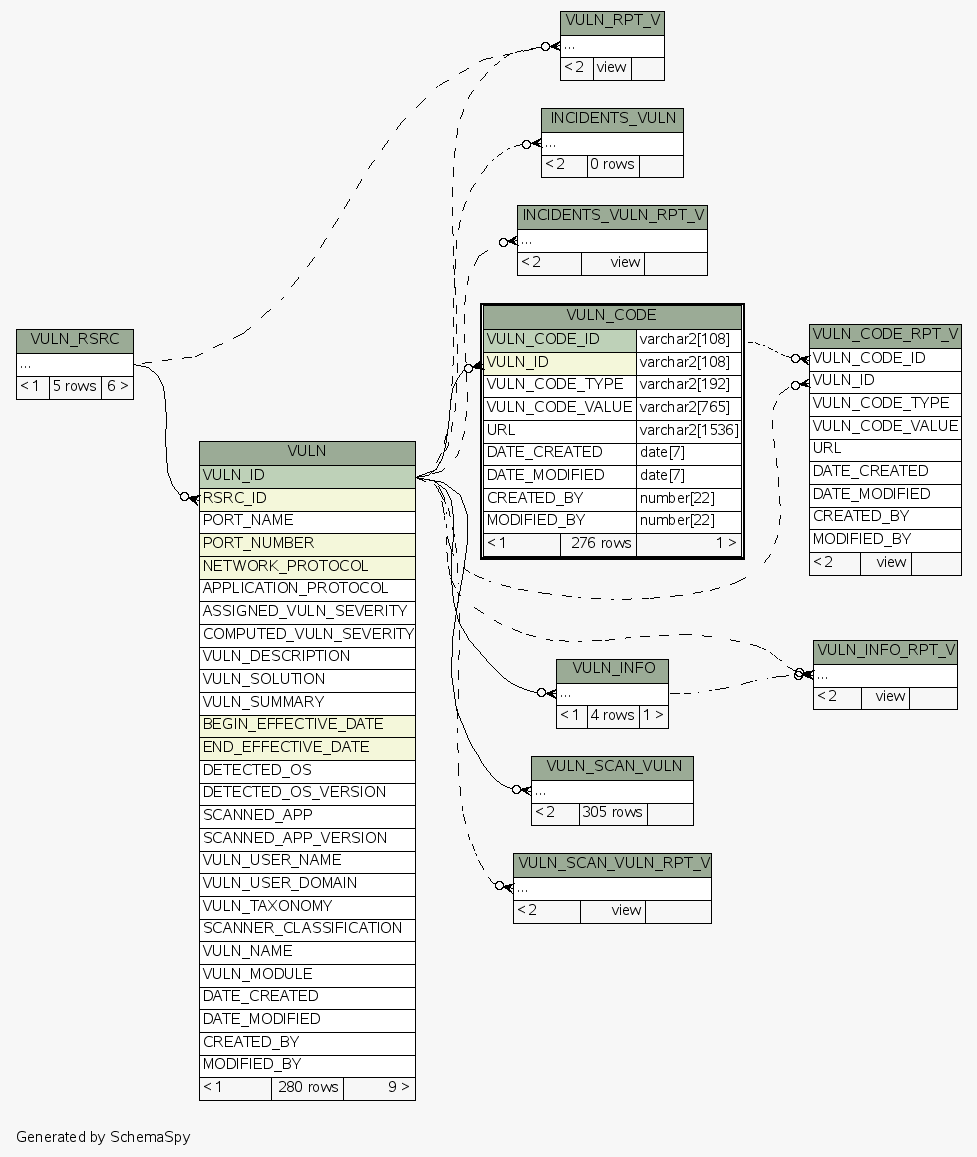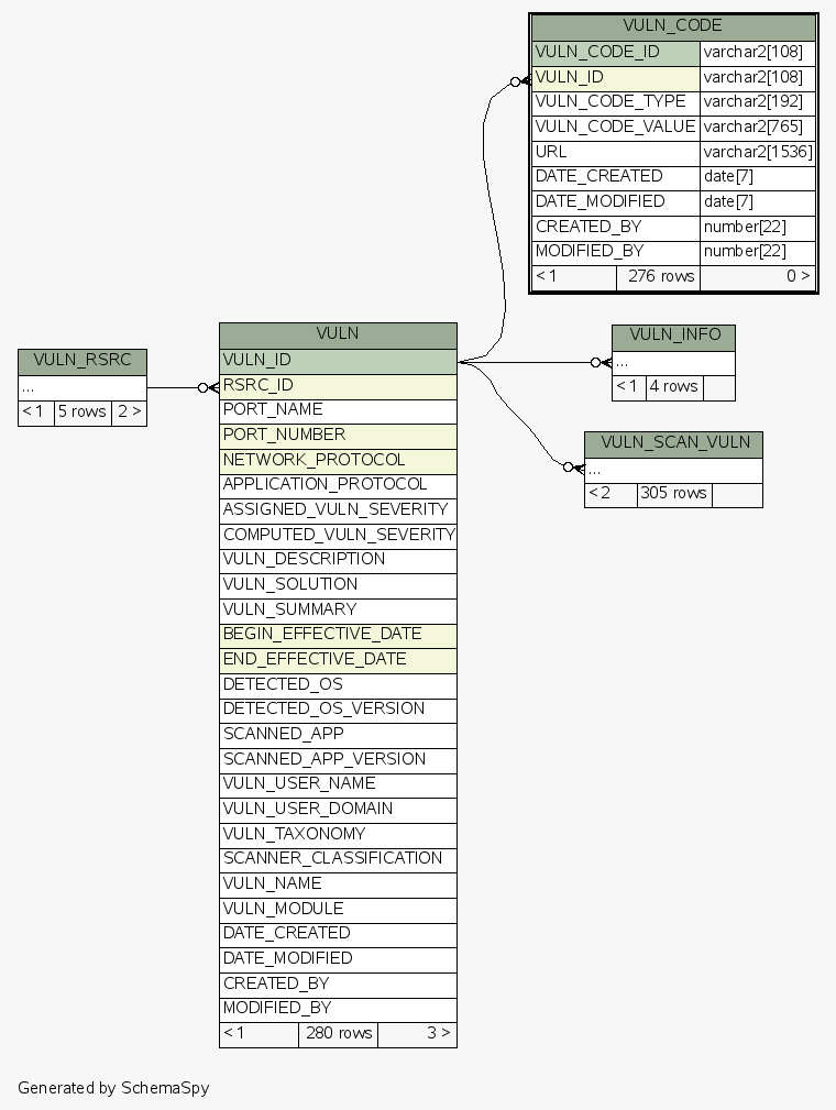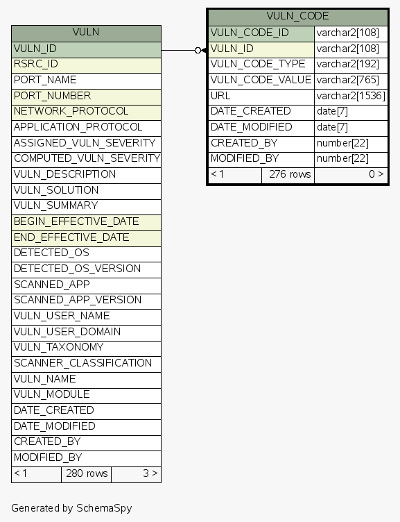 | Table ESEC.ESECDBA.VULN_CODE | Generated by SchemaSpy |
