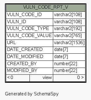 | View ESEC.ESECDBA.VULN_CODE_RPT_V | Generated by SchemaSpy |
