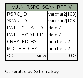 | View ESEC.ESECDBA.VULN_RSRC_SCAN_RPT_V | Generated by SchemaSpy |