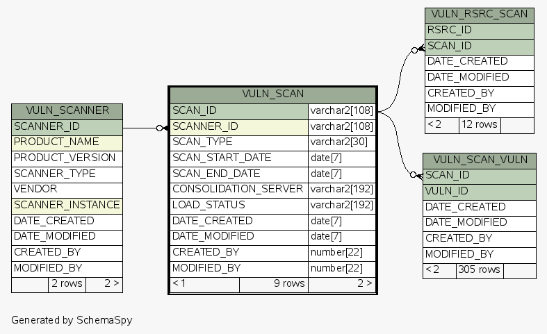 | Table ESEC.ESECDBA.VULN_SCAN | Generated by SchemaSpy |