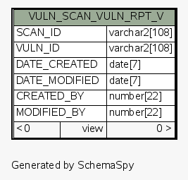 | View ESEC.ESECDBA.VULN_SCAN_VULN_RPT_V | Generated by SchemaSpy |