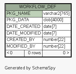 | PKG_NAME | Primary key | Asc | WORKFLOW_DEF_PK |