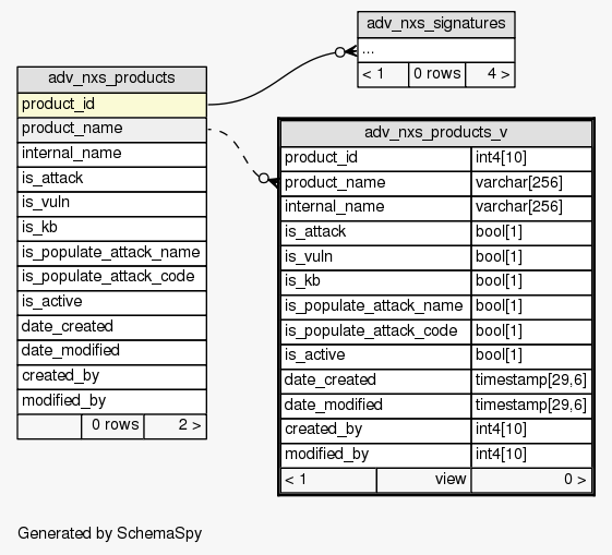 | View SIEM.public.adv_nxs_products_v All the products that are supported by Novell for Advisor.