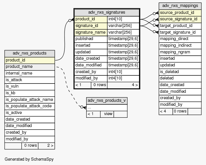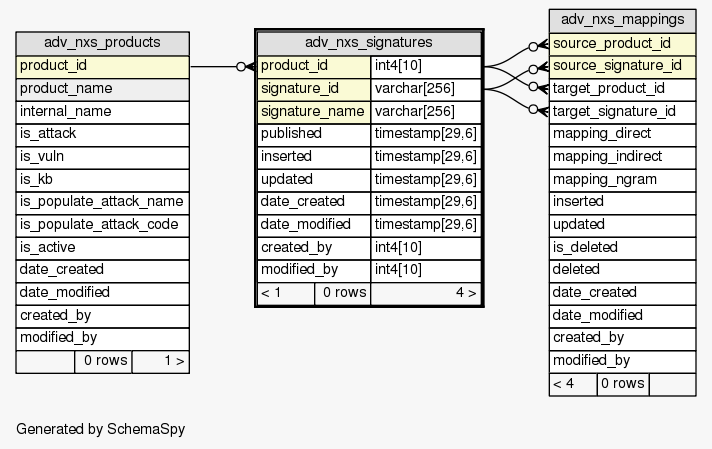 | product_id + signature_id | Performance | Asc/Asc | adv_nxs_signatures_idx1 |