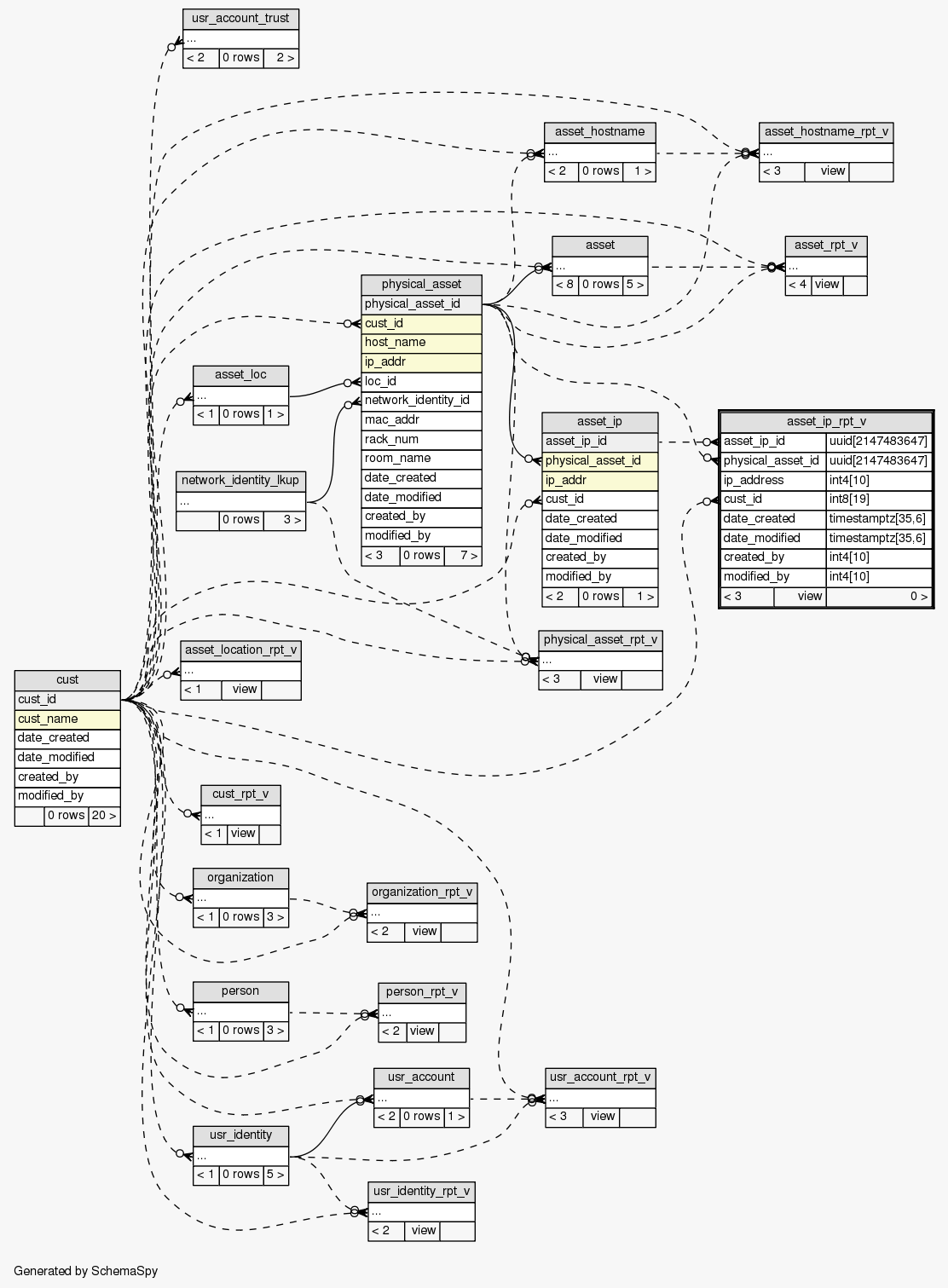 | View SIEM.public.asset_ip_rpt_v Asset IP address information