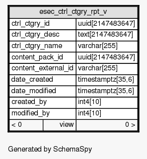 | View SIEM.public.esec_ctrl_ctgry_rpt_v Part of the solution pack content tracking system. This table holds the details of the control categories that are present in a solution pack.