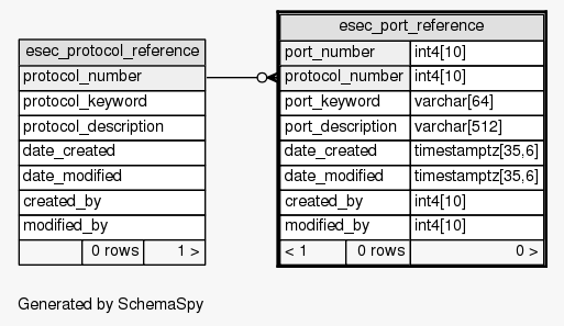 | port_number + protocol_number | Primary key | Asc/Asc | esec_port_reference_pk |