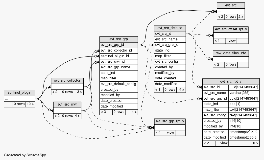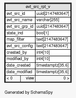 | View SIEM.public.evt_src_rpt_v The configuration information for all event source nodes.