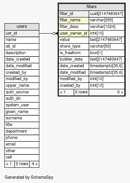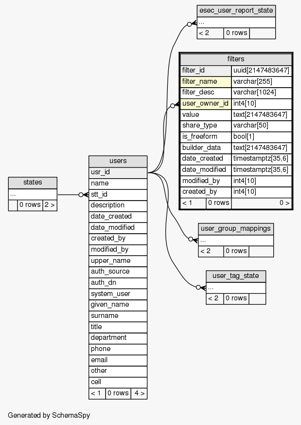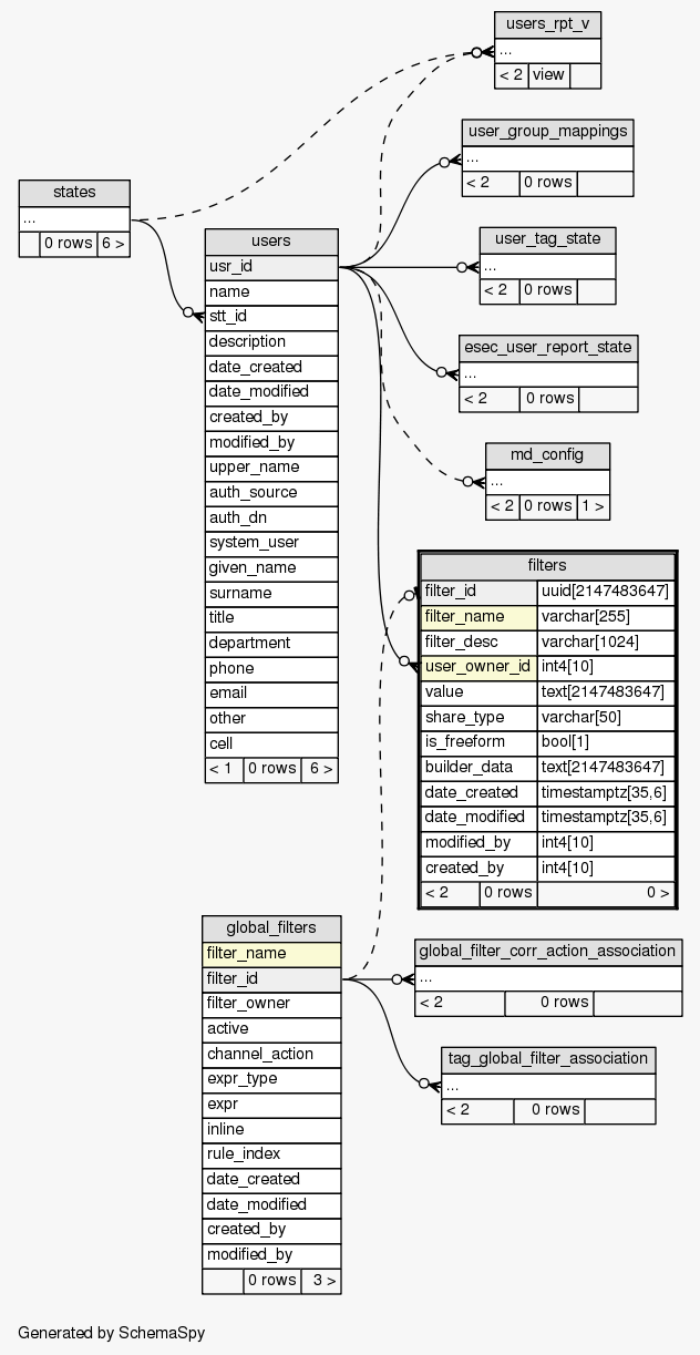 | Table SIEM.public.filters Filters used for various contexts
