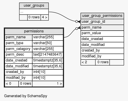 | Table SIEM.public.permissions Contains the list of predefined permissions for various functionality.