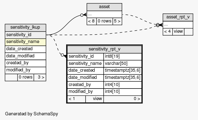 | View SIEM.public.sensitivity_rpt_v Asset sensitivity types